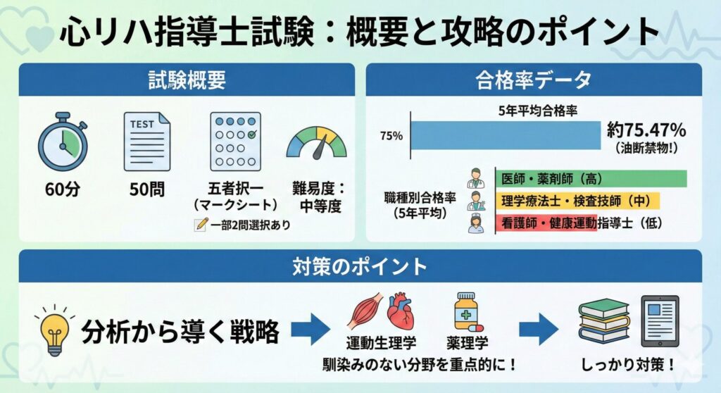 今回は、心リハ指導士の資格試験の概要から合格へのロードマップについて解説しました。