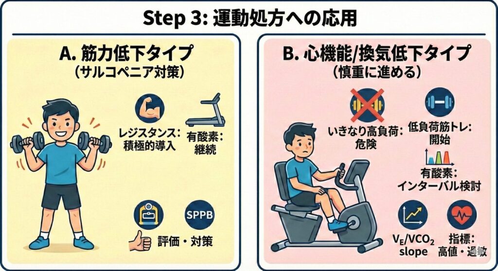 数値を総合的に解釈し、患者さんの背景(薬や合併症)も考慮して、オーダーメイドの運動プログラムを作成していきましょう。定期的に評価することで、リハビリの効果(「息切れが減ったのは心機能が良くなったからだ!」など)が目に見えてわかるようになりますよ。