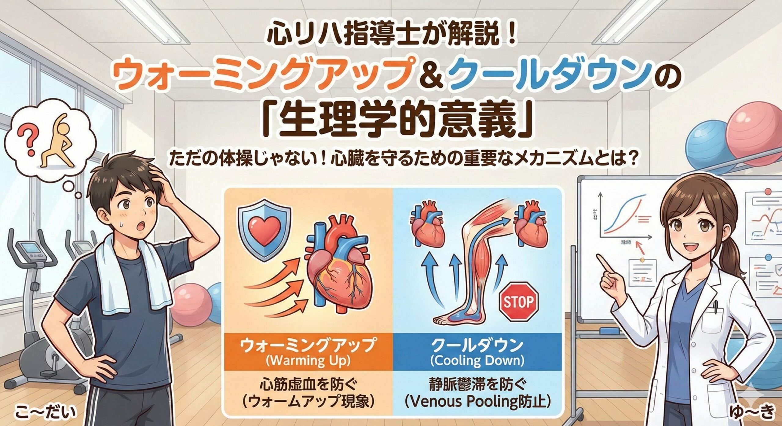 「ただの体操」だと思ってると痛い目を見るよ! 実は、心臓を守るためのものすごく重要な生理学的意味があるんだ。今日はそのメカニズムを解説していくね!